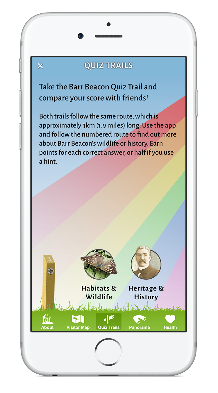 As part of a grant awarded by HLF to Walsall Council, we were commissioned to develop an app for Barr Beacon Local Nature Reserve (LNR) - one of a wider set of initiatves - to encourage the public to visit Walsall green spaces, and take up more exercise to improve general health.
