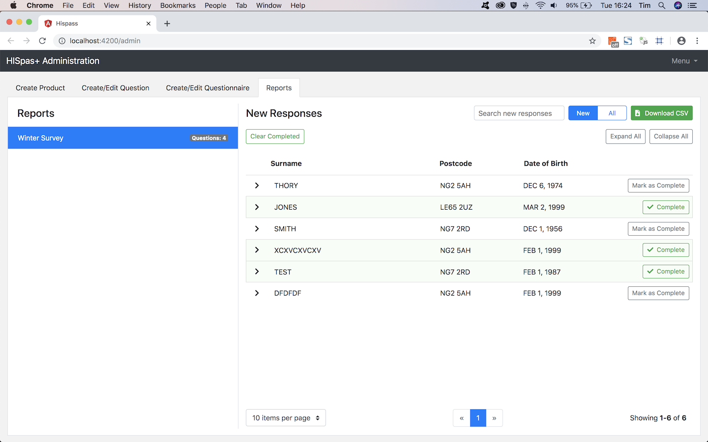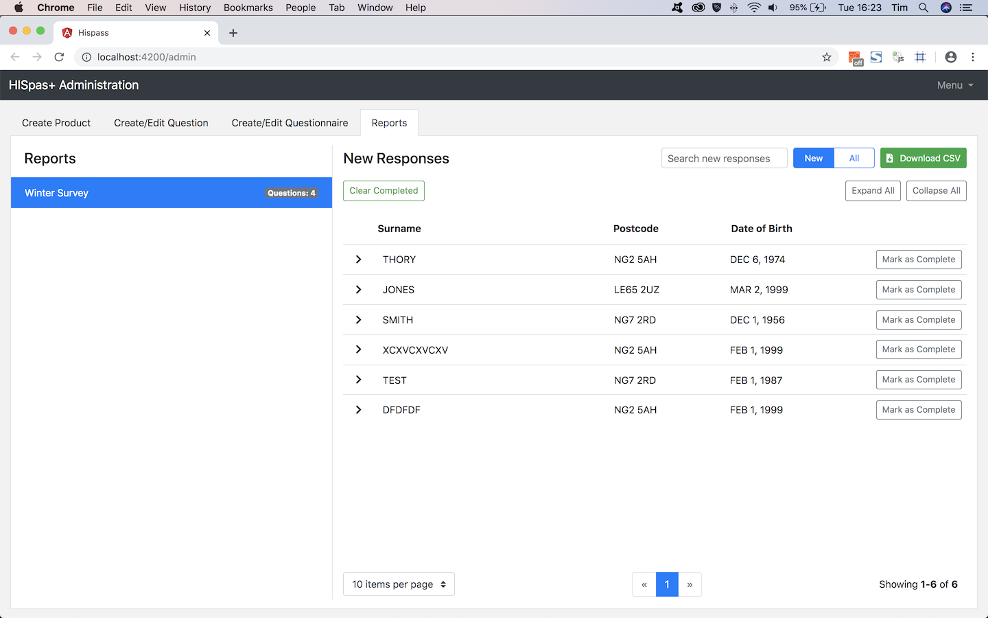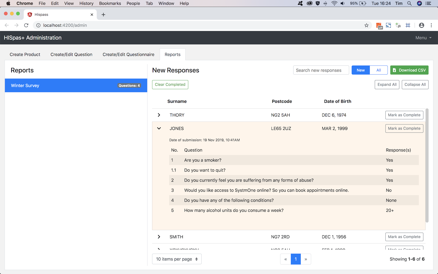 A touch screen web application for GP practices to survey patients and offer suggested pathways depending on the answers given. The project also included development of an admin web application to edit questions and view responses.
